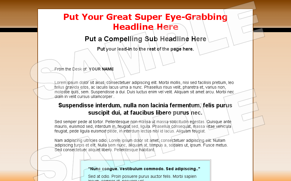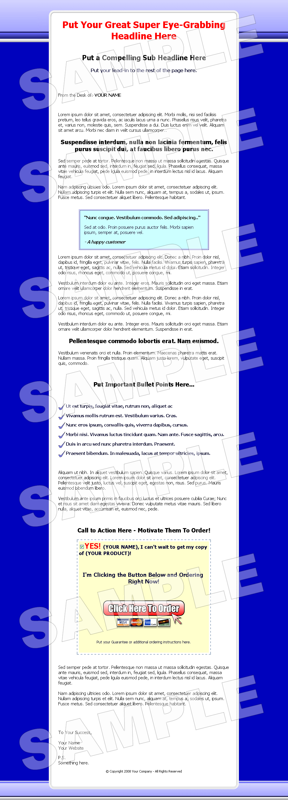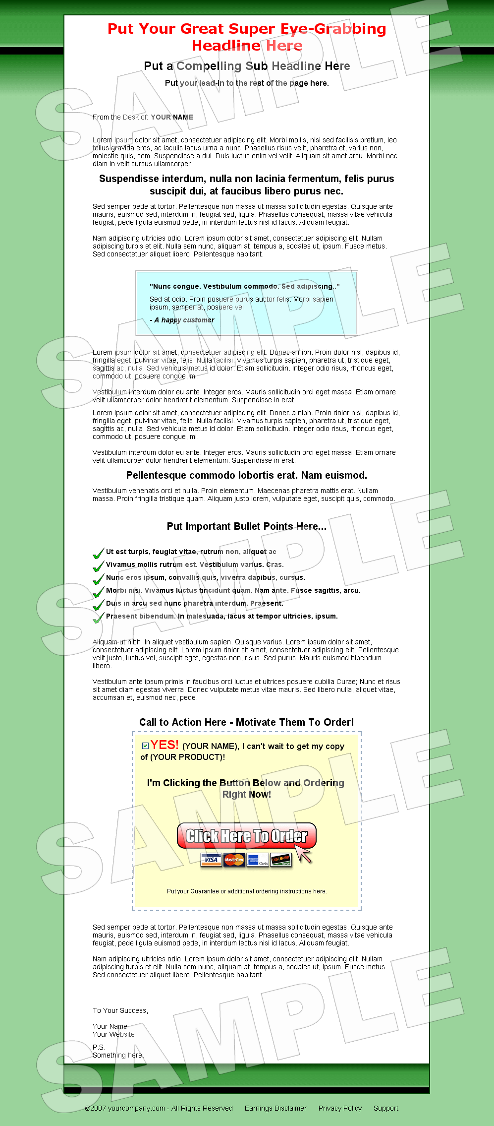 Pre-formatted for easy editing. Includes testimonial box and Buy